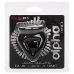 From bashful beginners to erotic experts, the Alpha Liquid Silicone Dual Cage and Ring will wrap you up tight in pleasure with the ultra-plush, stretchy enhancer ring. The playful ring is made from an ultra-stretchy liquid silicone with a daring cage and ring design.